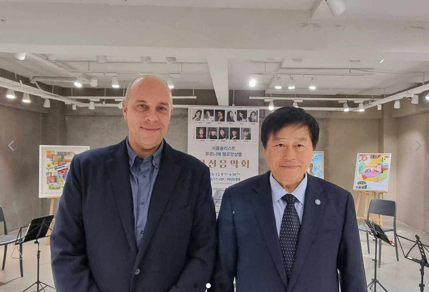 UN ECOSOC NGO FLML(총재 박창수)은 12.8(일) 저녁 이태리 ITA 'High Street Italia'(관장 Ferdinando Gueli)와 함께 서울솔리스트 푸르니에첼로앙상블(음악감독 송희송 대구카톨릭대 교수) 자선음악회를 개최하였습니다. 이날 자선음악회 공연은 발달장애 학생들로 구성된 푸르니에첼로잉상블과 서울솔리스트첼로앙상블 연주자들이 함께 하였는데,